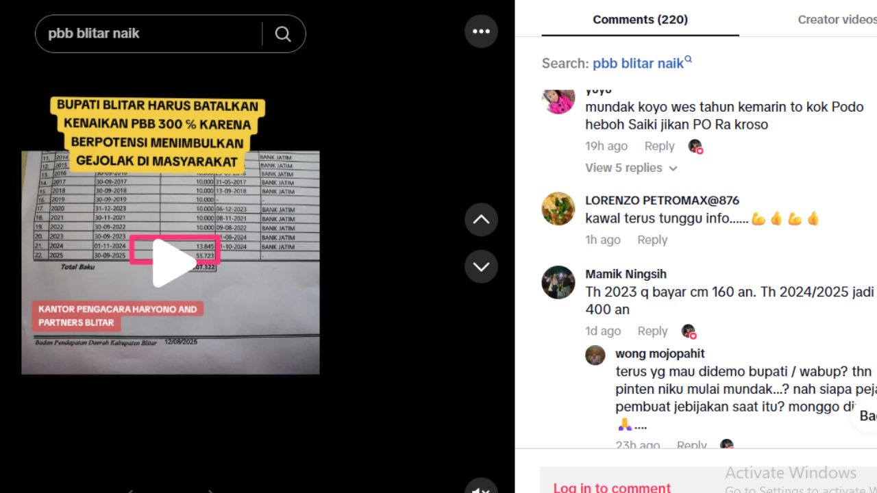 Sejumlah keluhan muncul di media sosial, termasuk unggahan akun TikTok @peduliblitarraya yang memuat unggahan yang mempertanyakan kenaikan drastis tersebut.