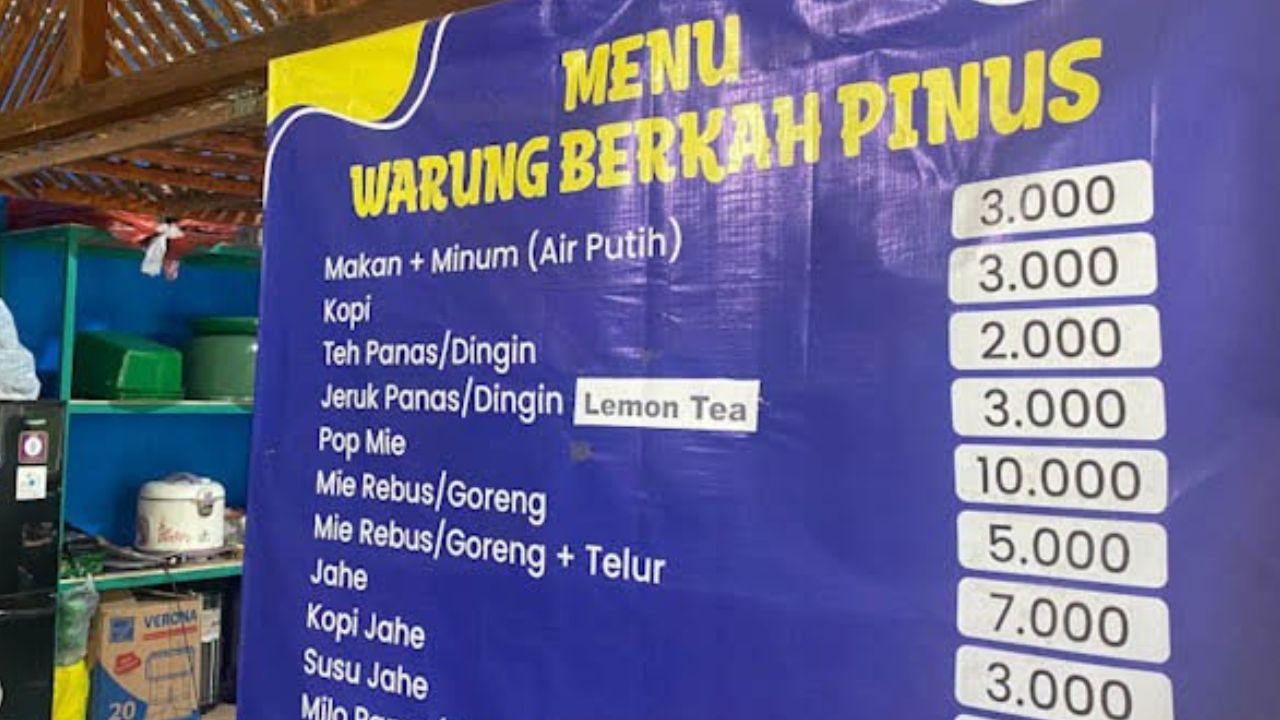 Warung Berkah Pinus yang beralamat di Lingkungan Bandung, Desa Tlogo, Kecamatan Kanigoro, Kabupaten Blitar ini menawarkan makan prasmanan dengan harga yang sulit dipercaya.