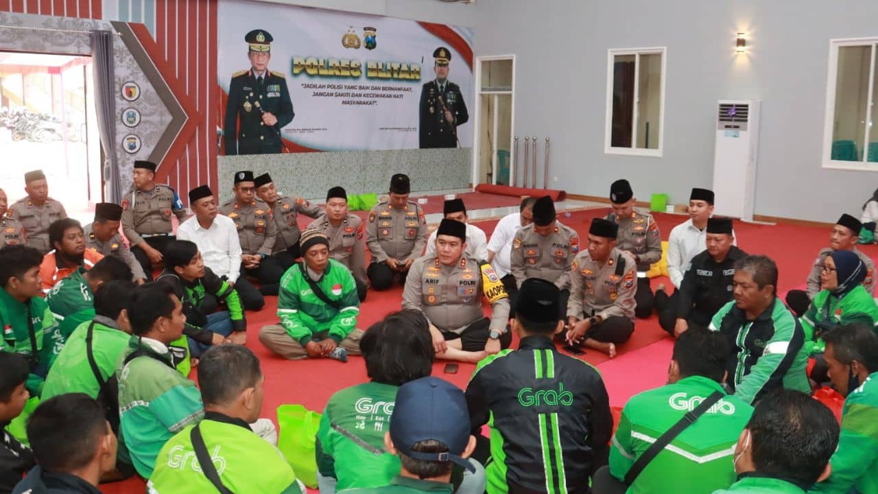 Usai rangkaian acara inti, Kapolres Blitar melanjutkan kegiatan dengan berdiskusi dan memberikan bantuan paket sembako kepada perwakilan Komunitas Ojek Online. Pada sesi ini, Kapolres menyempatkan diri mendengar secara langsung berbagai masukan dan keluh kesah yang dihadapi para driver dalam kesehariannya.