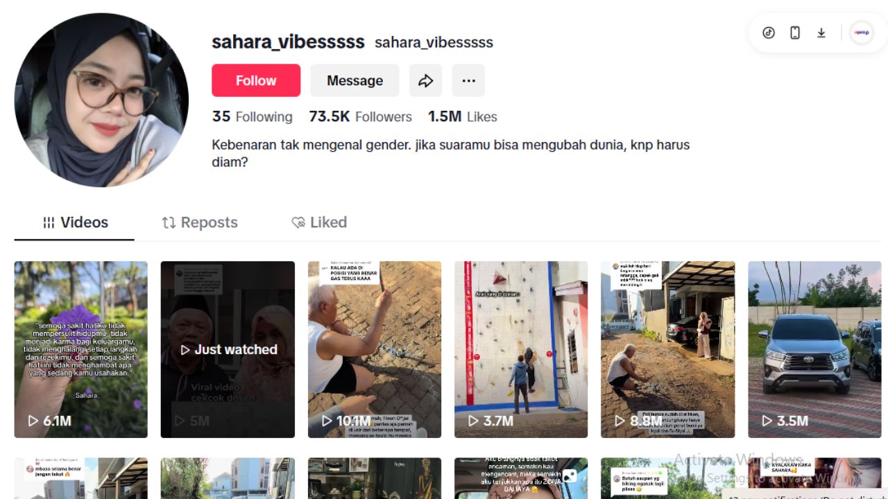 Akun @sahara_vibesssss sendiri telah memiliki pengikut yang besar, dengan 73,5 ribu followers dan lebih dari 1,5 juta like secara kumulatif.